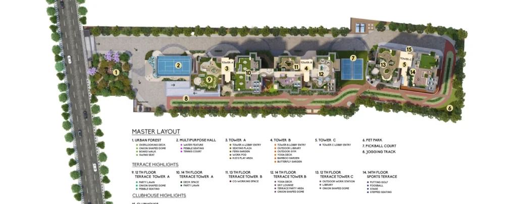 Nestled across 2.71 verdant acres, this esteemed development features 154 beautifully designed 100% corner homes. These exclusive corner units offer enhanced privacy, as they do not share walls with other apartments. You also get excellent ventilation to expel air impurities and maintain a healthy living environment. The meticulously crafted 3 and 4 BHK homes are Vaastu-compliant and come with premium specifications, ensuring an atmosphere of exclusivity and elegance.
